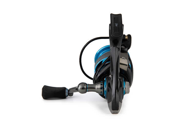 Carrete de Spinning de la marca Salmo modelo S4000 en diseño negro y azul, especial para la pesca de Bass.