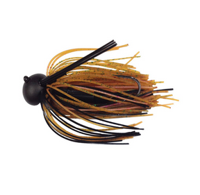 Jig de la marca Hart modelo K Cobra de 14 gramos en color OF (negro, marrón y amarillo), especial para la pesca de depredadores.