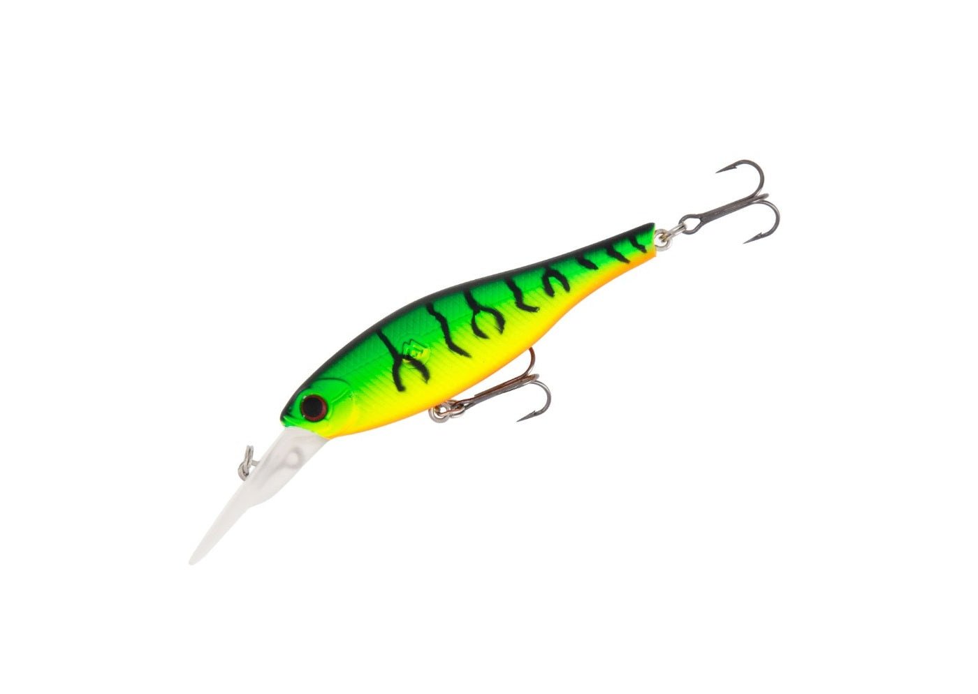 Señuelo tipo jerkbait de la marca Mikado, modelo Evo Twitch, de 90 milímetros en color amarillo, verde y negro, especial para la pesca de bass y depredadores.