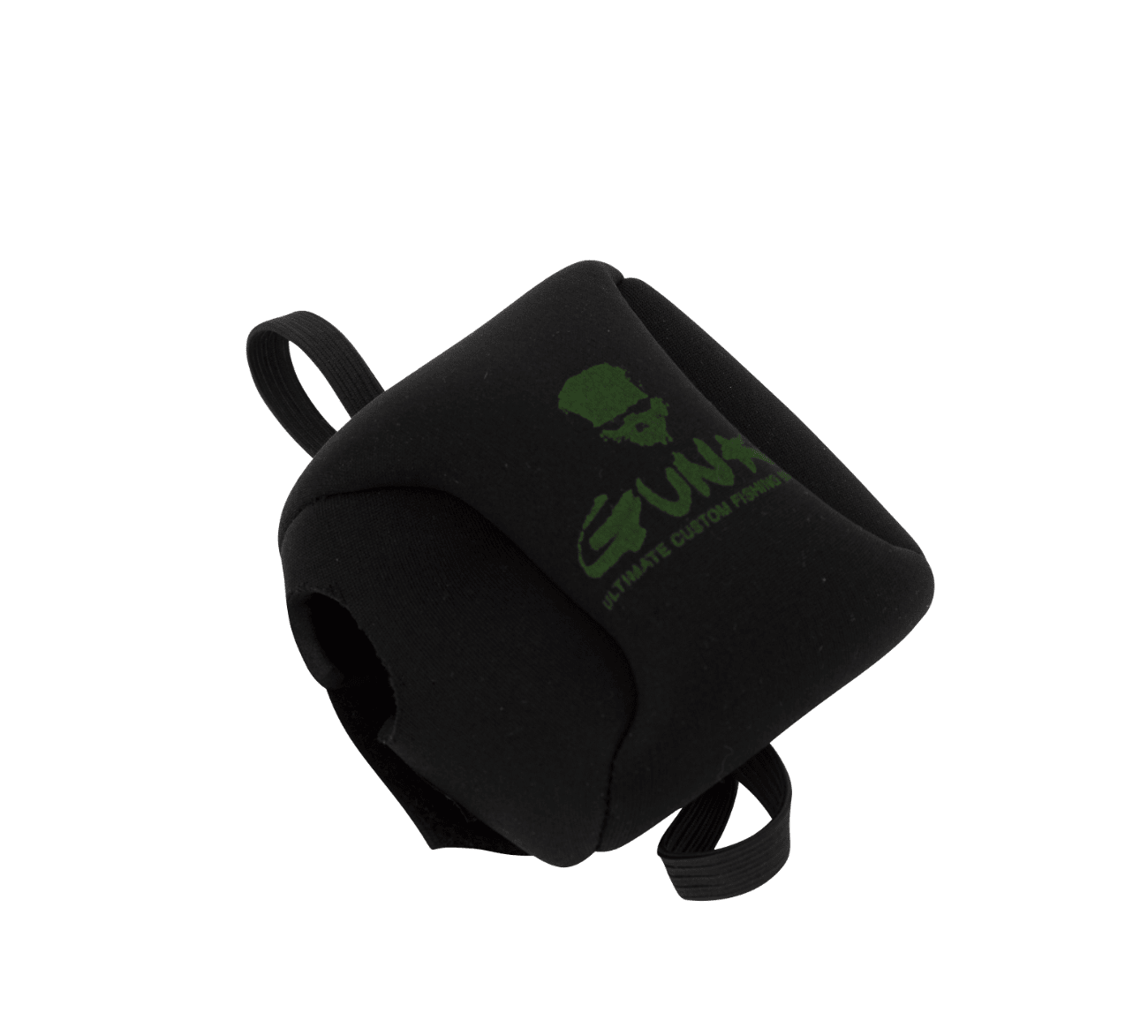 Funda para carrete de la marca Gunki, fabricada en neopreno de alta calidad, en color negro, creada para guardar y proteger tus carretes de casting.