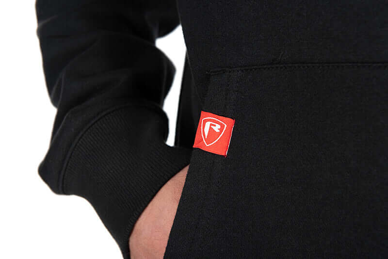 Sudadera con gorro de la marca Fox Rage en color negro con logo blanco, especial para la pesca de black bass y depredadores.