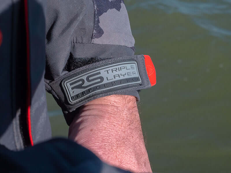 Chaqueta térmica de la marca Fox Rage modelo RS Triple Layer en color negro y gris con detalles rojos, especial para la pesca del Black-Bass. Chaqueta impermeable y transpirable para mantener al pescador seco, mientras que el aislamiento térmico, le dará al pescador una calidez total.