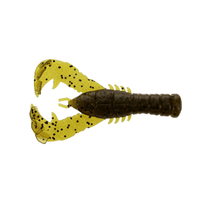 Vinilo con forma de cangrejo de 76 milímetros de la marca Yamamoto modelo Yama Craw en color verde con pintas negras, especial para la pesca de Black Bass. Diseño de imitación a cangrejo y con garras con hiperacción.