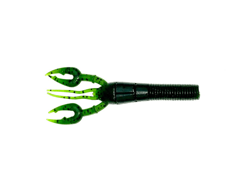 Vinilo con forma de cangrejo de 95 milímetros de la marca Yamamoto modelo Fat Baby Craw, en color sandia con pintas negras, especial para la pesca de Black Bass.