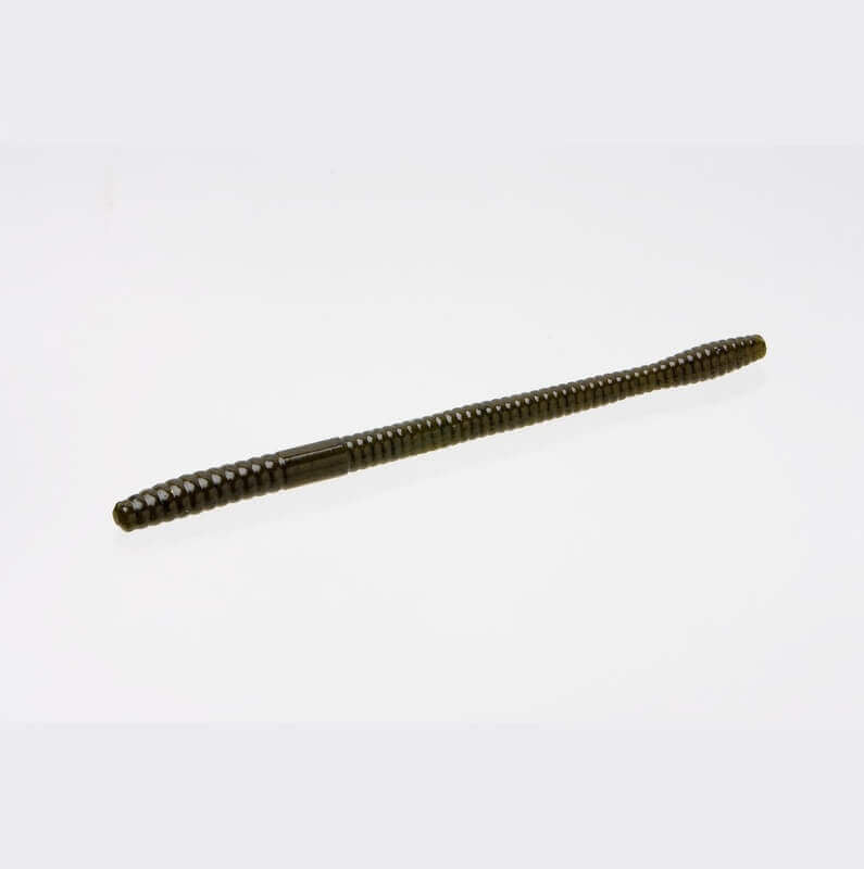 Vinilo con forma de gusano voluminosa y cola recta de 177 milímetros de la marca Zoom modelo Magnum Finesse color verde. Es un gusano con más grosor que el modelo anterior Trick Worm, que al ser más grande mueve más agua y admite anzuelos de mayor tamaño.