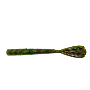 Vinilo de la marca AGR modelo Akira con forma de gusano voluminoso con cola de paleta de 115 milímetros en color green pumpkin, especial para la pesca de bass y depredadores.