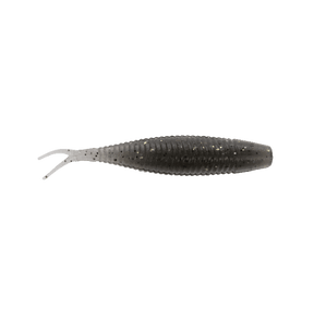 Vinilo con forma de pez de 76 milímetros de la marca Yamamoto modelo Scope Shad en color gris con pintas negras y doradas, especial para la pesca de black bass y depredadores.